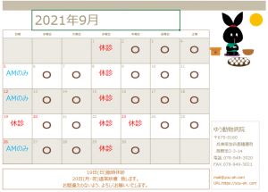 20219月NEW カレンダー休診案内