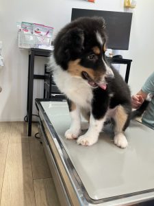 セディちゃんは診察台に乗る練習です。